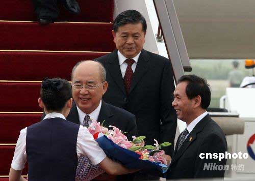 5月29日,中國國民黨主席吳伯雄一行抵達上海。中新社發 盛佳鵬 攝
