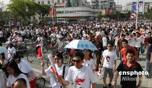 圖:喜迎奧運圣火的蕪湖群眾