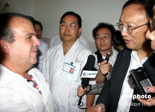 5月30日上午,中國外交部部長楊潔篪來到四川省人民醫院,看望在這里救治地震災區傷病員的古巴醫療隊,感謝他們給予四川地震災區民眾的關心,并高度贊揚了他們的國際人道主義精神。中新社發 楊杰 攝