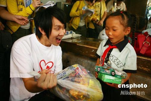 組圖:香港藝人林俊杰看望災區孩子(2)