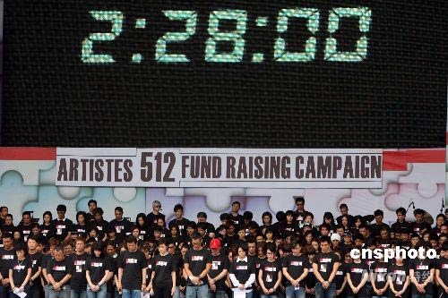 六月一日,香港“演藝界五·一二關愛行動”在西九龍中天地舉行大匯演,三百多位來自中、港、臺的藝人以馬拉松接力方式輪流演出,為四川地震災區籌款。中新社發 武仲林 攝