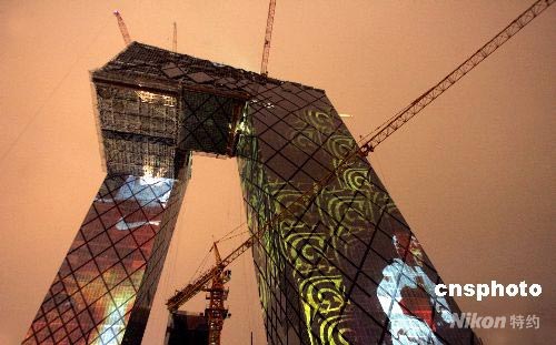 圖:巨型投影扮靚央視新址 體育精神鼓舞中國加油 (5)