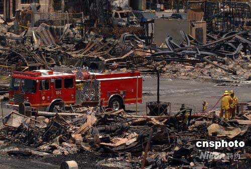 圖:洛杉磯環(huán)球影城火災(zāi)現(xiàn)場(chǎng)一片狼籍