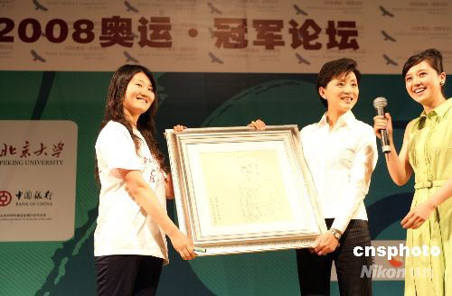 圖:楊瀾接受北京大學贈送的“楊瀾畫像”