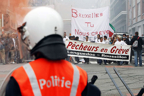 示威漁民稱,除非歐盟提供更多的幫助,否則他們的生計將受到威脅。漁民們封鎖了歐盟委員會外的主要街道,抗議轉變為暴力,數百名的防暴警察手持警棍和盾牌,動用水龍驅散抗議人群。憤怒的漁民們砸碎了玻璃、推翻汽車,并縱火焚燒歐盟的旗幟。(關新)