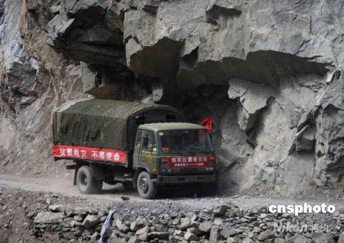 圖為車隊通過虎口崖。中新社發 曾憲平 攝