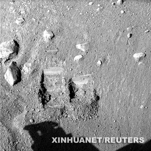 這張美國宇航局6月6日發布的照片顯示的是“鳳凰”號火星著陸探測器6月5日拍攝的“鳳凰”號挖掘臂挖掘火星土壤時留下的兩個坑。 新華社/路透