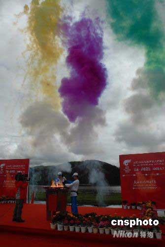 6月11日,奧運圣火在云南香格里拉傳遞,圣火傳遞結束儀式在普達措國家公園屬都湖邊舉行,現場的美景和跳躍的圣火一起描繪了一幅“天人合一”的絕色畫面。中新社發 石雨 攝