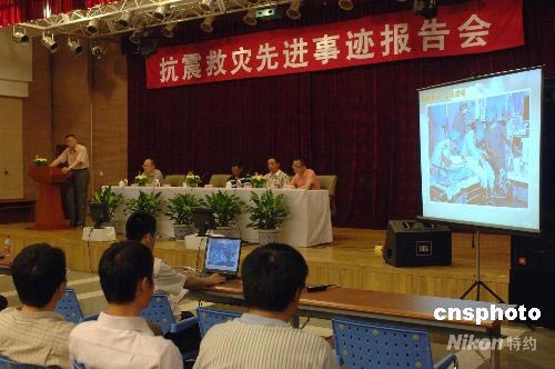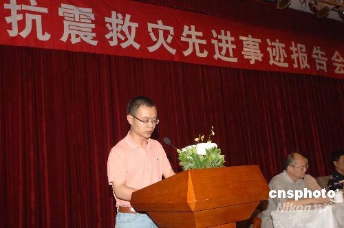 圖為僑辦系統(tǒng)抗震救災先進事跡報告會的現(xiàn)場。中新社發(fā) 鄒憲 攝