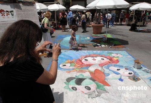 帕薩迪納粉筆畫藝術節 《福娃》吸引美國觀眾