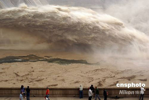 6月19日上午9時(shí),黃河小浪底水庫(kù)開始實(shí)施調(diào)水調(diào)沙,這是自2002年以來(lái)黃河小浪底的第七次調(diào)水調(diào)沙。此次調(diào)水調(diào)沙,預(yù)計(jì)歷時(shí)12天左右,最大流量達(dá)到每秒3900立方米左右。調(diào)水調(diào)沙期間,小浪底、西霞院庫(kù)區(qū)全面封航。中新社發(fā) 平白 攝