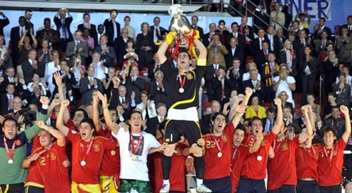 北京時間6月30號凌晨,2008歐洲杯決賽在奧地利維也納的恩斯特-哈佩爾球場打響。西班牙隊1比0力克德國隊奪得冠軍,斗牛士軍團44年后再次登上歐洲之巔。“金童”托雷斯打入全場唯一進球。由于德國隊的波多爾斯基沒能取得進球,本場因傷休戰的西班牙射手比利亞以4個進球當選最佳射手。