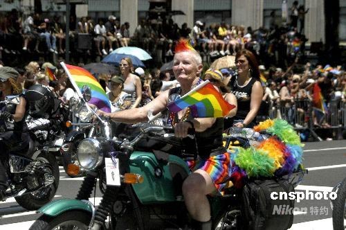 6月29日,同性戀大游行在紐約曼哈頓第五大道舉行。參加者盡情展示奇裝異服以及想象力,勁歌熱舞,希望引起社會對同性戀的更多關注。中新社發 魏晞 攝