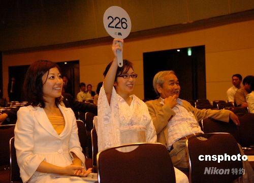 6月30日下午,日本漫畫家協會在東京為在四川大地震中遭受嚴重損失的綿陽市南山中學舉行漫畫作品義拍活動,圖為競拍現場。中新社發 朱沿華 攝
