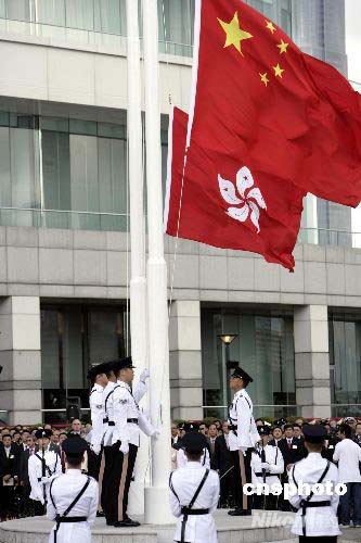 七月一日,香港金紫荊廣場舉行盛大升旗儀式,慶祝香港回歸祖國十一周年。特首曾蔭權及特區政府官員、中央駐港聯絡辦公室、外交部駐港特派員公署、駐港部隊及眾多民眾參加。中新社發 王麗南 攝