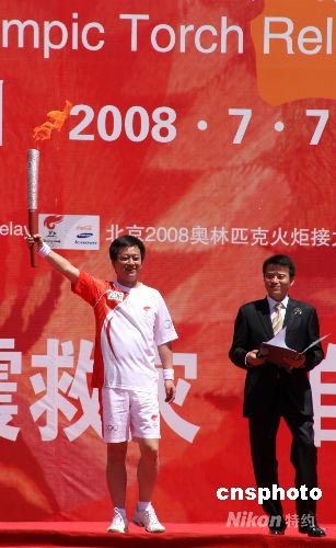7月7日,北京奧運火炬圓滿結束在蘭州的傳遞,中央電視臺節目主持人朱軍在自己的家鄉擔任最后一棒火炬手。 中新社發 周兆軍 攝