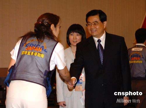 圖:胡錦濤在札幌會見日本救援隊醫(yī)療隊代表