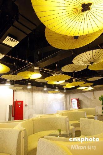 圖:北京奧運(yùn)會主新聞中心的休息區(qū)