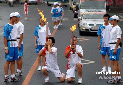 奧運火炬吉林市傳遞 火炬手同時親吻火炬