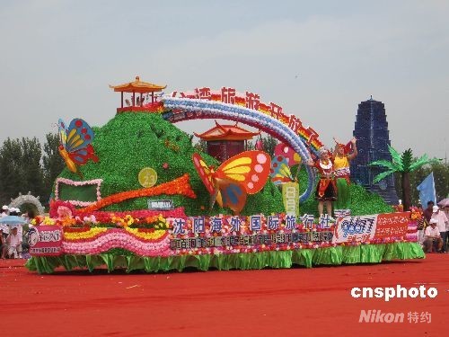 8月30日,由國家旅游局、遼寧省政府主辦的2008中國沈陽國際旅游節開幕,開幕式上舉辦了國內外花車巡游。中新社發 沈殿成 攝