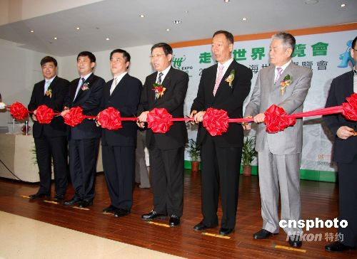 9月22日,“2010上海世界博覽會推介會”暨“走進世界博覽會”展覽活動在臺北舉行。臺北市市長郝龍斌(左三)、上海常務副市長楊雄(左四)、臺灣鴻海集團董事長郭臺銘(左五)等出席開幕式并剪彩。中新社發 陳立宇 攝