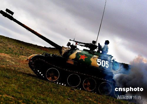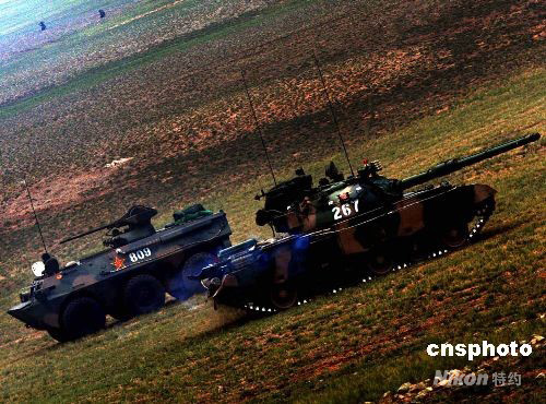 9月25日上午,中國人民解放軍“礪兵--2008”演習(xí)在塞北大漠展開。參演雙方的主力分別是濟(jì)南軍區(qū)某機(jī)械化步兵旅和北京軍區(qū)某裝甲團(tuán)。這場演習(xí)是一場在復(fù)雜地形、復(fù)雜電磁環(huán)境、作戰(zhàn)信息“背靠背”情況下,跨軍區(qū)聯(lián)合、多兵種協(xié)同、陸航空一體、實(shí)兵檢驗(yàn)性戰(zhàn)術(shù)集團(tuán)立體機(jī)動攻防戰(zhàn)斗演習(xí)。中新社發(fā) 宋吉河 攝