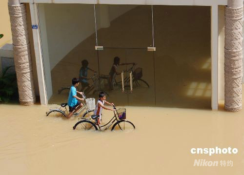 9月29日,廣西南寧市邕寧區(qū)部分街道、社區(qū)、鄉(xiāng)村被洪水淹沒,受今年第14號臺風(fēng)“黑格比”影響,邕江(珠江上游)等江河水位暴漲,嚴重影響了距離南寧市中心城區(qū)20余公里的邕寧區(qū),當?shù)?.7萬人受災(zāi),目前尚無人員傷亡。中新社發(fā) 劉萬強 攝