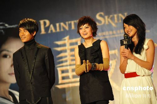 圖為《畫皮》主演陳坤、孫儷、周迅在慶功會現場。