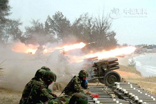 解放軍某107mm火箭炮分隊實彈射擊:戰炮齊射