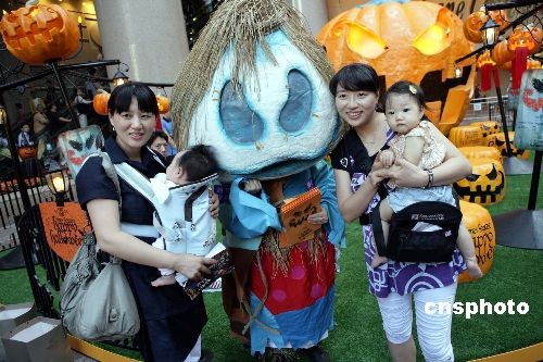 十月二十一日,香港時代廣場設置“怪異南瓜陣”迎接萬圣節到來。中新社發 洪少葵 攝