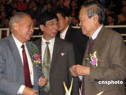 11月1日,在西南聯大在昆建校70周年紀念大會上,諾貝爾獎獲得者楊振寧與錢學森弟子、中國控制論與人工智能專家戴汝為院士相談甚歡,共敘友情。