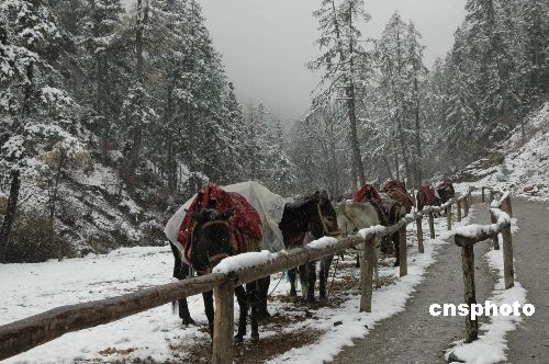 深秋季節,四川甘孜藏族自治州高海拔地區普降大雪。圖為被譽為“中國最后的香格里拉”——四川稻城亞丁景區雪景。中新社發 肖龍聯 攝