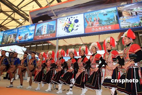 11月20日,在上海舉行的“二00八中國國際旅游交易會”上,臺灣少數(shù)民族歌舞加上臺灣旅游主題展區(qū),成為交易會上精彩亮點。中新社發(fā) 潘索菲 攝