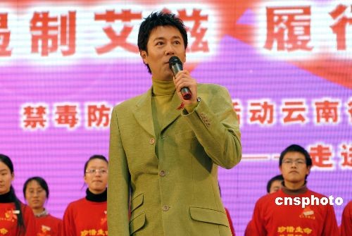 作為中國防艾義務宣傳員的著名歌手蔡國慶28日出席云南舉行的防艾宣傳進大學活動。中新社發 保旭 攝