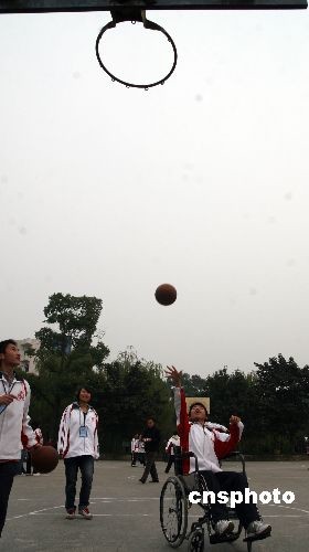 12月2日下午,百余名重慶中學生參加由英國駐重慶總領事館文化教育處主辦的校園體驗日迷你殘奧會。他們通過使用輪椅等殘障人士生活輔助工具進行比賽,此次活動旨在使學生們了解殘疾人、關愛殘疾人。中新社發 郭晉嘉 攝
