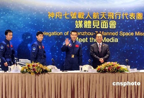 十二月五日,“神舟七號”載人航天飛行代表團抵達香港,展開四天訪問。當(dāng)日下午代表團在酒店與新聞界會面。