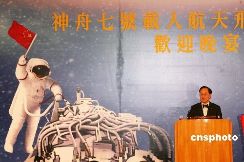 十二月五日晚,香港特區(qū)政府在香港會(huì)議展覽中心舉行晚宴,歡迎“神舟七號(hào)”載人航天飛行代表團(tuán)一行。中新社發(fā) 武仲林 攝