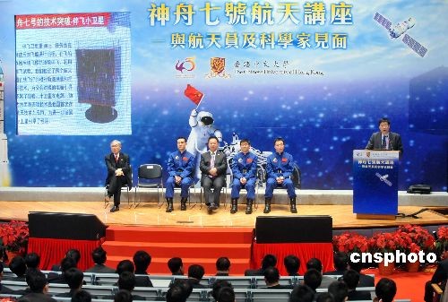 十二月六日,“神舟七號”載人航天飛行代表團來到香港中文大學,與學生進行交流。