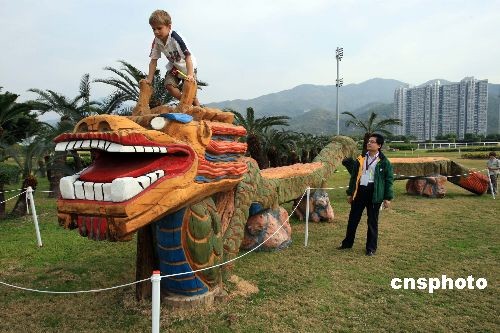 著名的香港沙田馬場自從2008年成為奧運馬術賽場后,更是名氣遠揚。部分漂亮的“龍”造型馬術比賽跨欄,將成為體育運動珍品,在近日啟程赴北京展覽。圖為“龍”造型馬術比賽跨欄之一。中新社發 潘索菲 攝