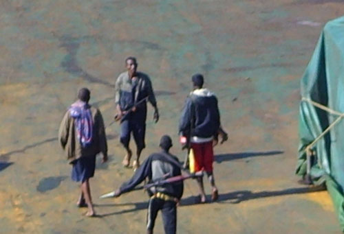 危急關頭,馬來西亞反海盜中心來電告知:多國部隊的直升機趕來了。亞丁灣時間11時09分,直升機抵達上空。并擊沉一艘海盜小艇。直升機因為油料有限,不一會兒就返回基地加油,直升機雖然飛走,但“振華4號”上的攻防戰進入了“相持階段”。