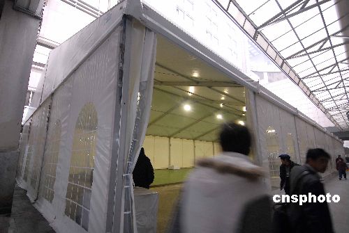 2009年1月5日,為迎接即將到來的春運,兩個高6.5米、占地面積達750平方米的臨時候車室出現在杭州火車站,這也是杭州站第一次在室外搭建候車室,杭州東站也將搭建近1500平方米的第三候車室。中新社發 引煒 攝