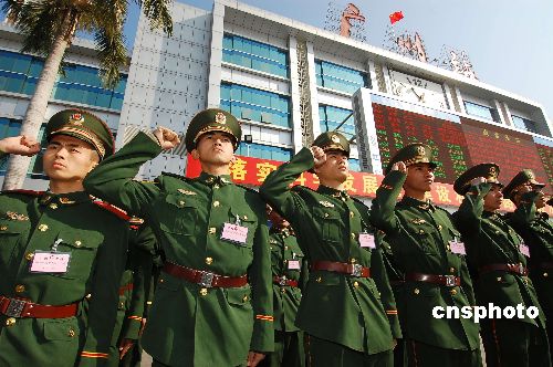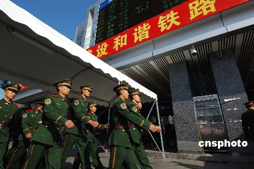 廣州火車站執勤武警誓師。中新社發 柯小軍 攝