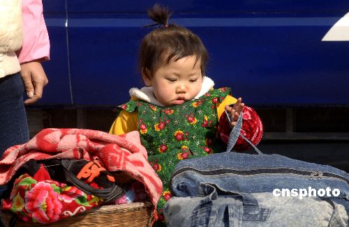 福州火車站旅客微笑的看著前方。中新社發 王東明 攝