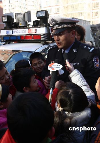 1月14日,北京崇文區交通支隊民警為崇文小學學生和家長講授交通安全課。中新社發 杜洋 攝