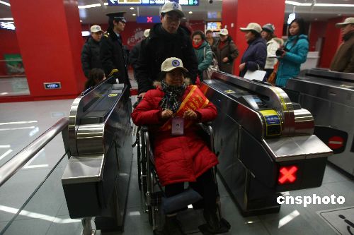 圖:北京殘疾人志愿者體驗無障礙設施(3)
