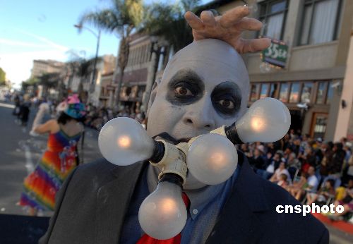 第三十二屆“搗蛋”大游行(Doo Dah Parade)一月十八日在加州帕薩迪納市舉行。“搗蛋”大游行號稱“搞笑版”美國玫瑰花車大游行,創始于一九七八年,參加“搗蛋”大游行的表演者個個竭盡搞笑、夸張之能事,讓數萬名觀眾享受開心一刻。中新社發 張煒 攝