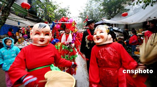 1月26日,雙石鎮(zhèn)群眾歡天喜地迎接新年到來。當日,重慶市永川區(qū)雙石鎮(zhèn)舉行“排街慶新年”活動,舞龍隊、腰鼓隊、車幺妹隊、彩旗隊等隊伍組成的排街隊伍,沿途邊舞、邊跳、邊作揖,用喜慶祥和的方式向全鎮(zhèn)群眾拜年。中新社發(fā) 陳仕川 攝