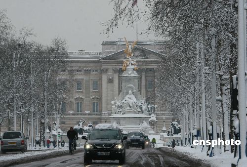 英國(guó)自1日下午起開(kāi)始降雪,至2日早晨已經(jīng)成為十八年最嚴(yán)重的暴雪。惡劣天氣使公共交通陷入停頓或癱瘓,首都倫敦的公交車停駛,地鐵線也陷入混亂狀況。圖為大雪中的英國(guó)王宮白金漢宮。