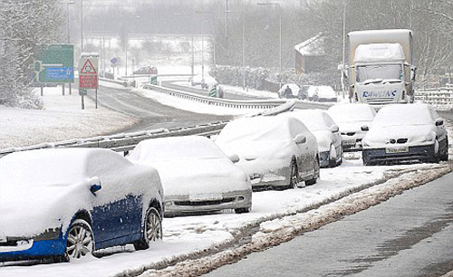 大雪導(dǎo)致公路交通嚴(yán)重癱瘓。20年來(lái)最大的暴風(fēng)雪日前襲擊了英國(guó)的英格蘭和威爾士等地。