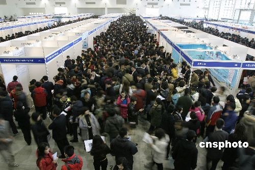 2月5日,“第三十四屆京城(北京)職場--2009年首場人才招聘會”,在全國農業展覽館新館開幕。 招聘會設立了約400個展位,應聘的北京高校學生多達約幾萬人次,場面異;鸨。